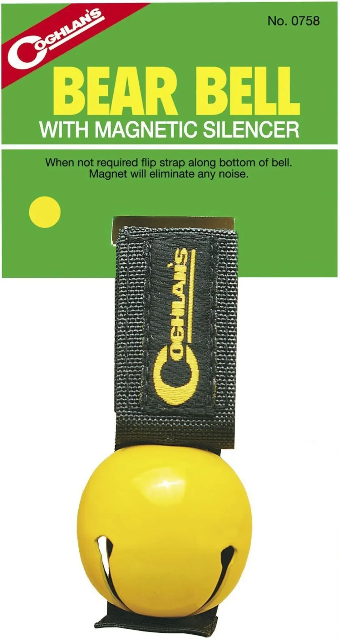 Laut schallende Coghlans Glocke in Gelb, ideal zur Befestigung an Kleidung, Fahrrad, Schlitten oder Wander- und Skistock. Der Klang hilft, Bären oder andere Tiere und Fußgänger auf sich aufmerksam zu machen.
