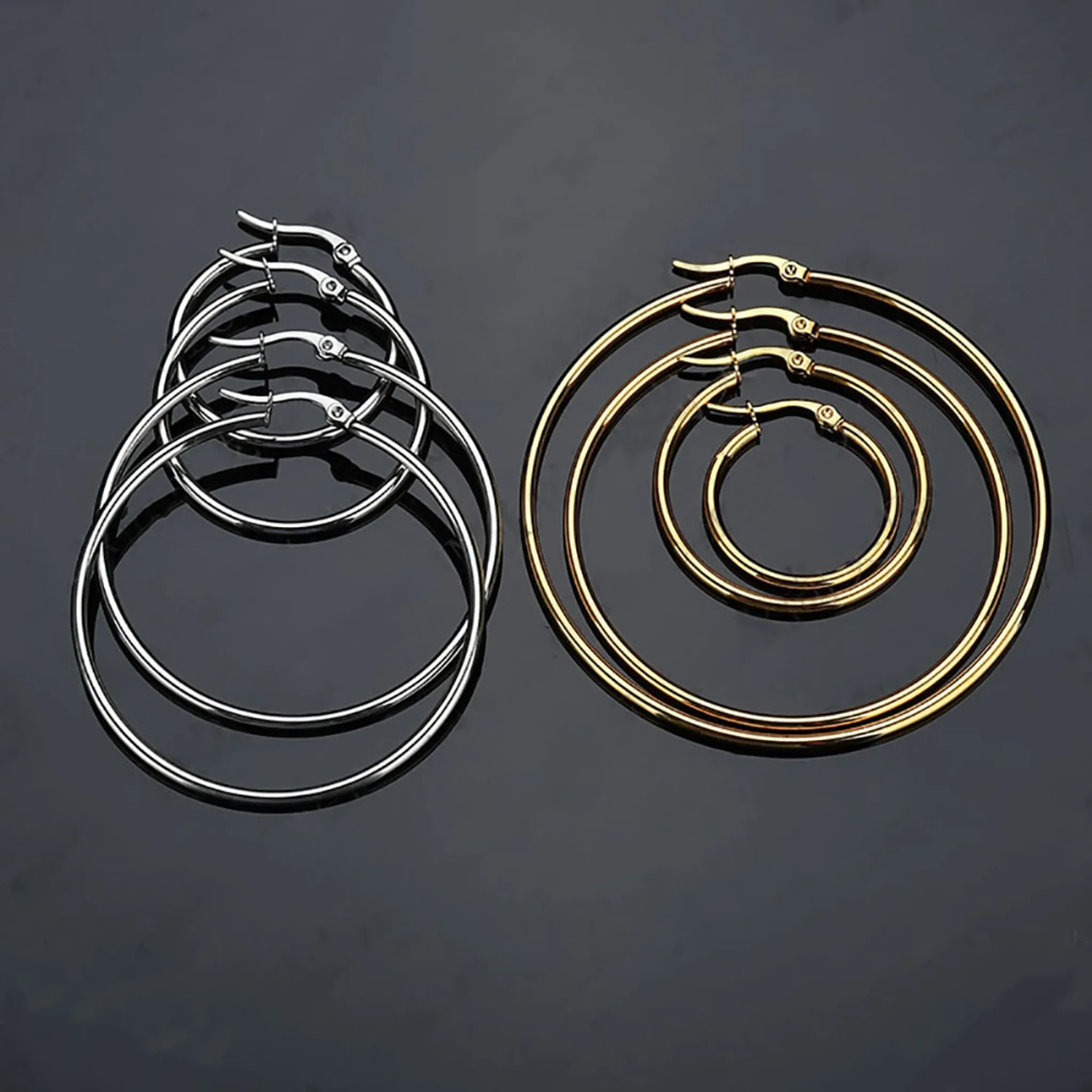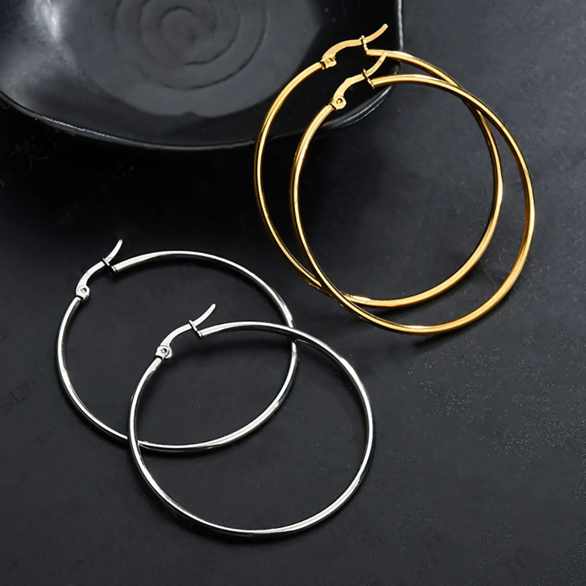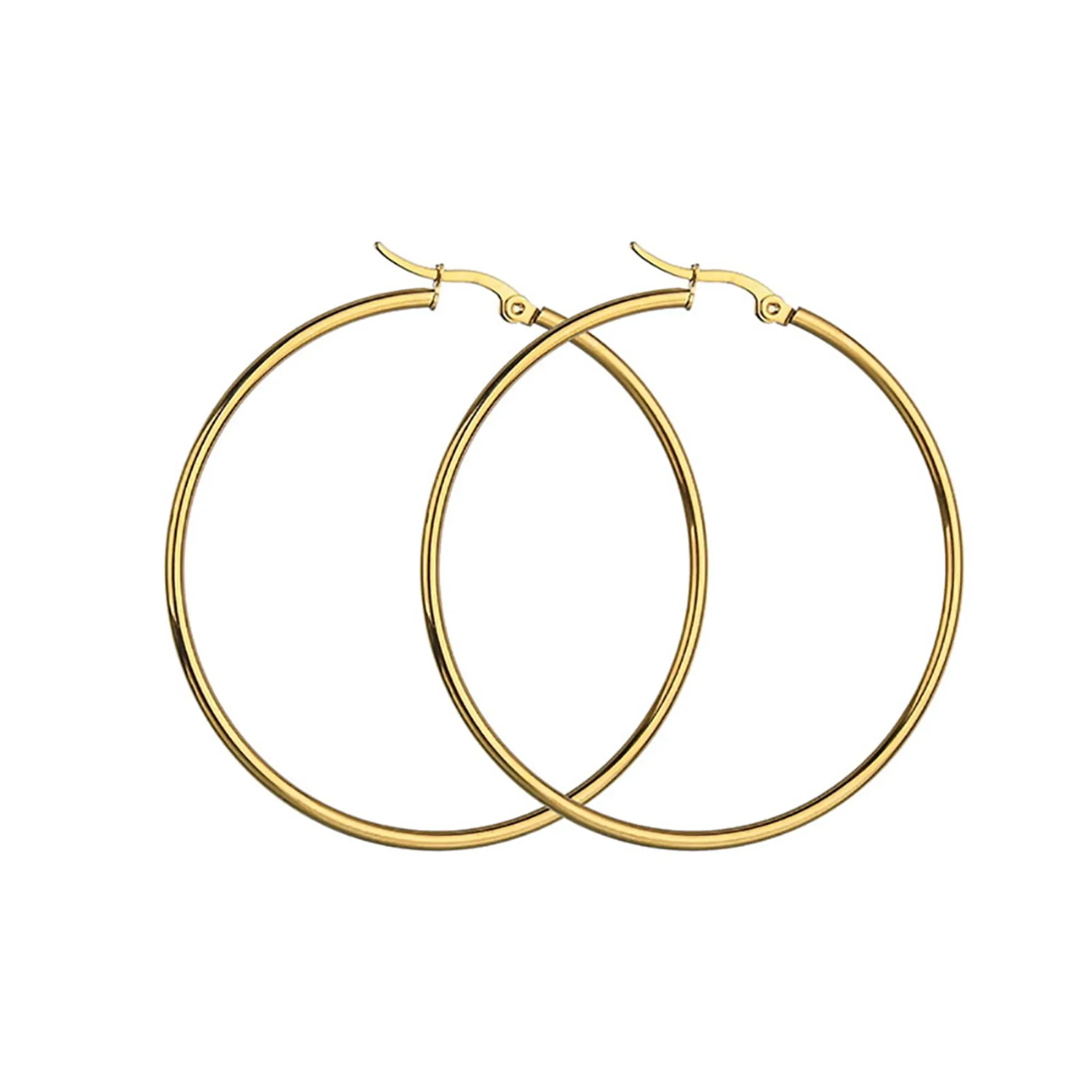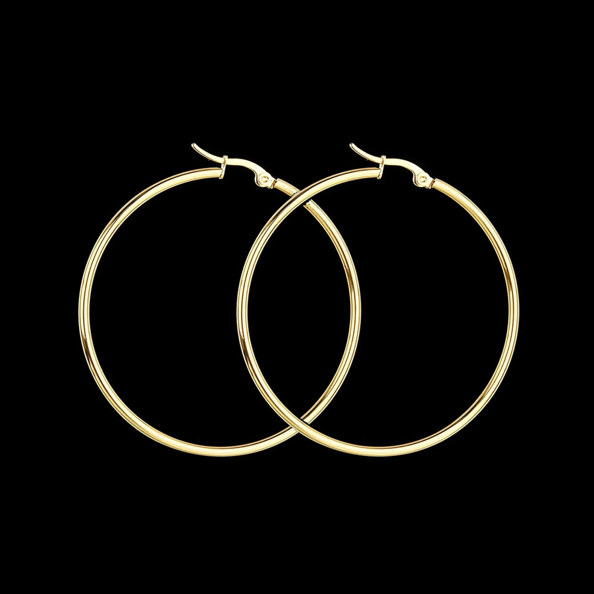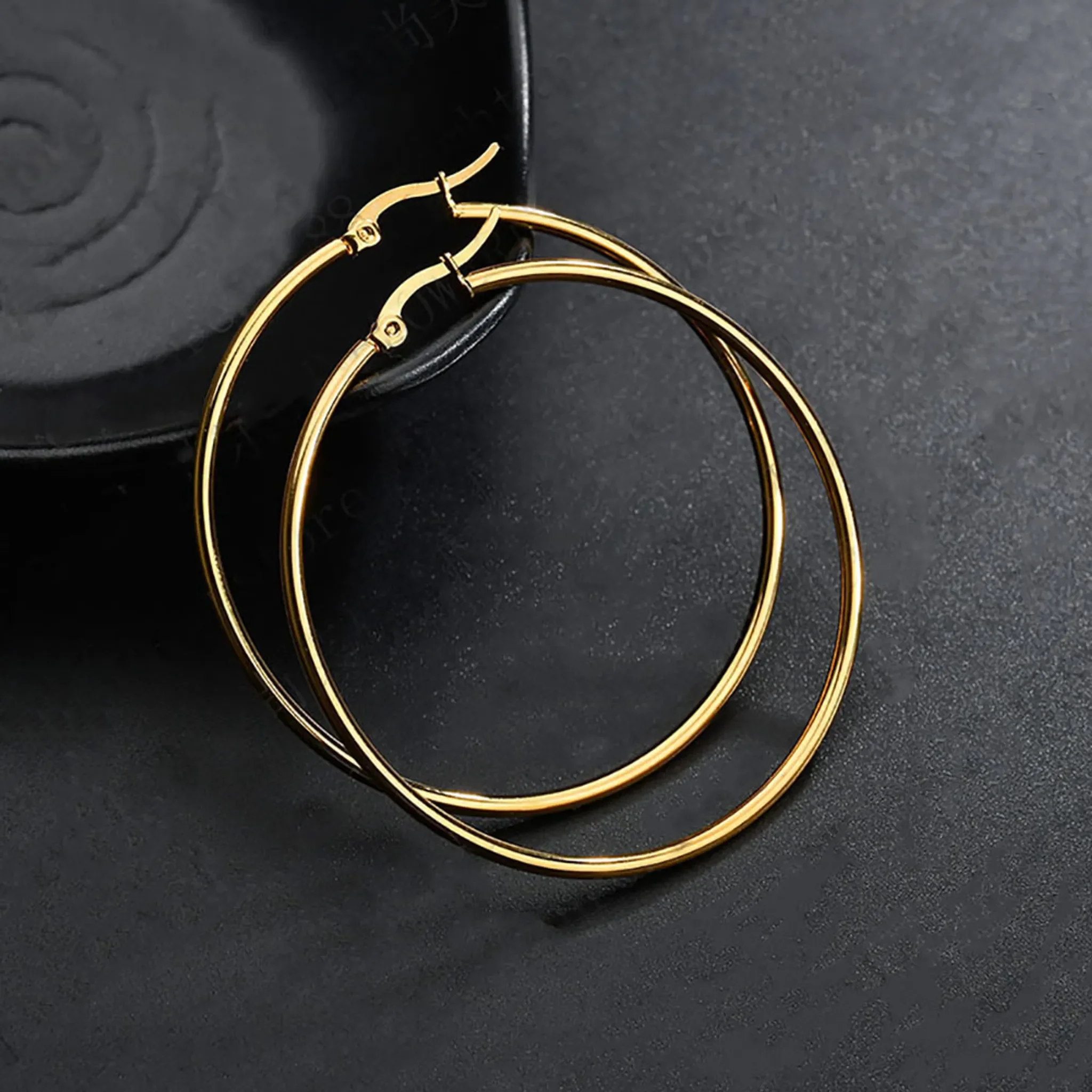 Elegante Damen-Creolen aus Edelstahl in Golden, großer Kreis (Big Circle). Glänzend, robust und ideal für Party, Club, Pub, Cocktail, Bankett oder den Alltag. Femininer Schmuck, der überall auffällt.