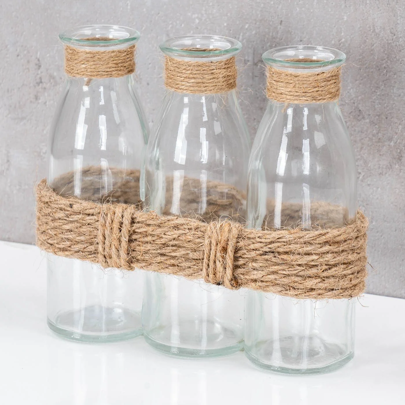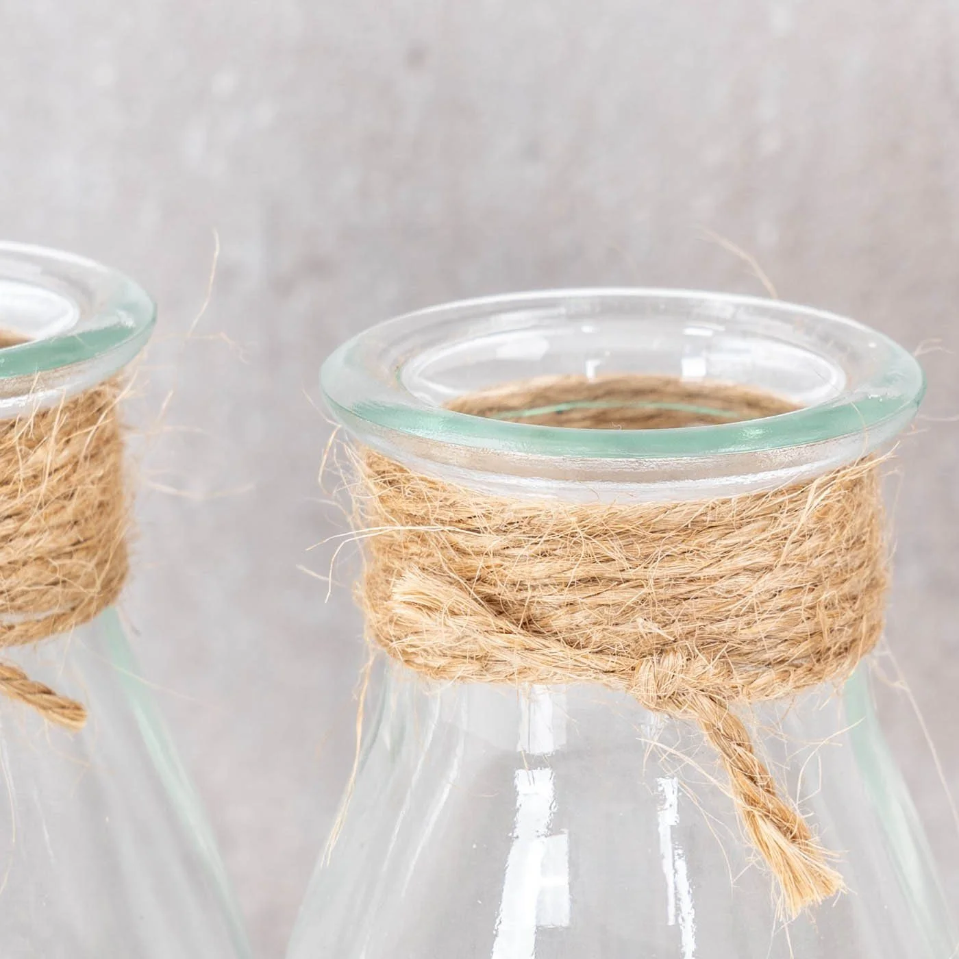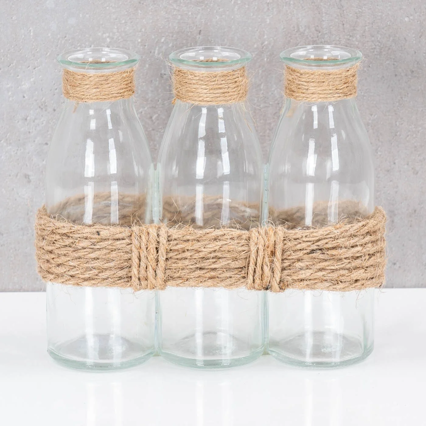 Dekovase – 3er-Set Glasvasen mit Juteband im Vintage-Stil