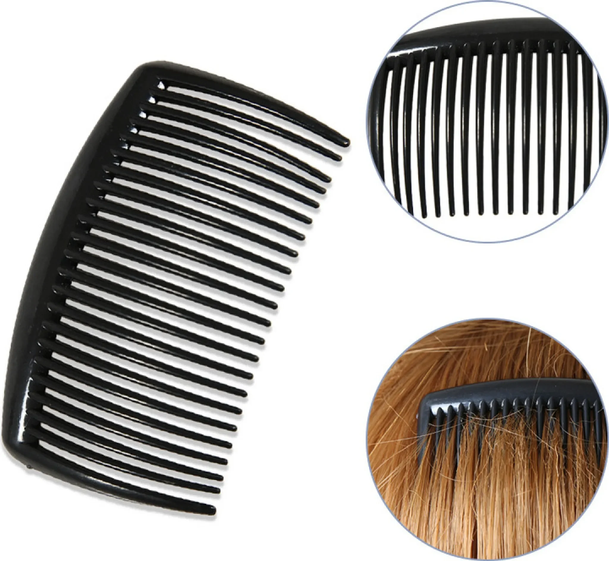 Hochwertiger Einsteckkamm aus Kunststoff mit 23 Zähnen. Ideal für feines und dünnes Haar, hält Frisuren sicher an Ort und Stelle und ist angenehm zu tragen.