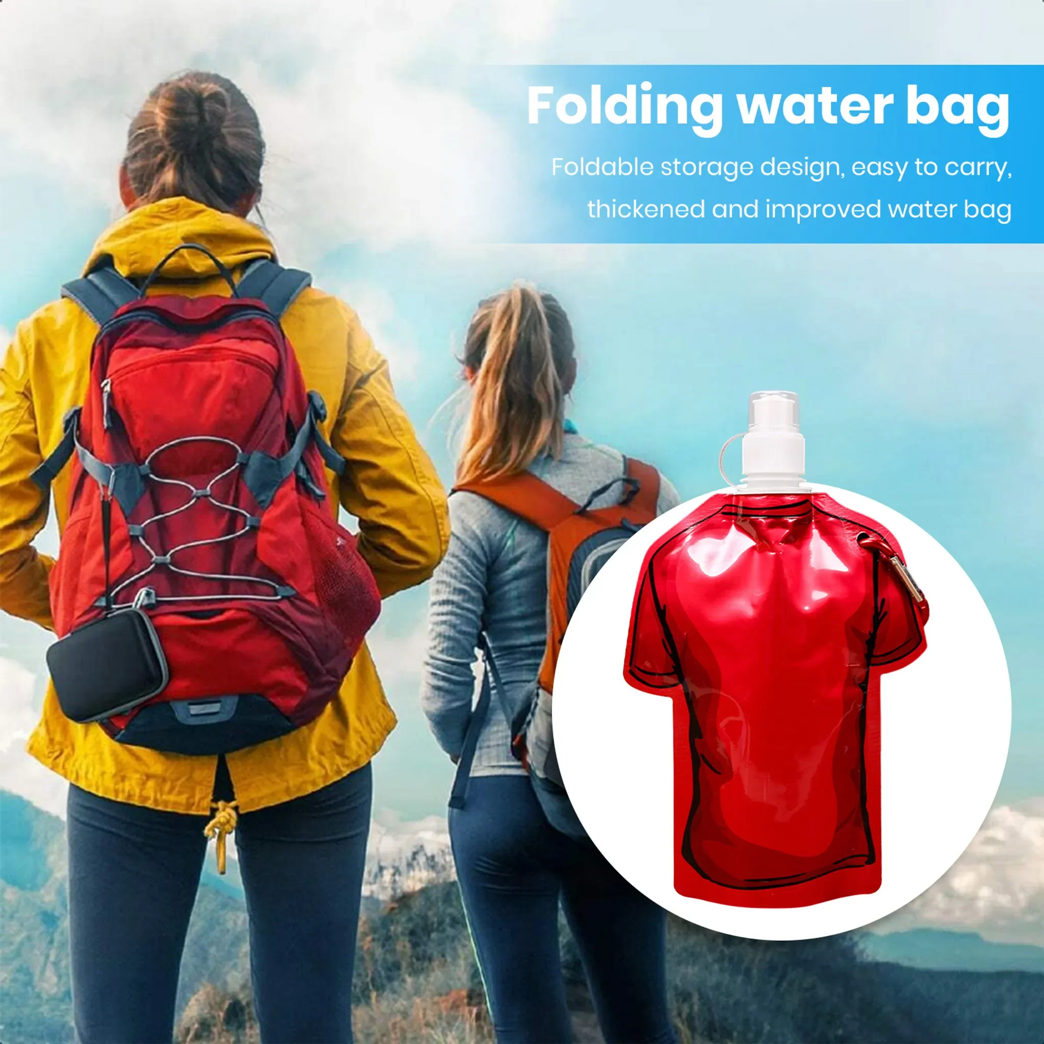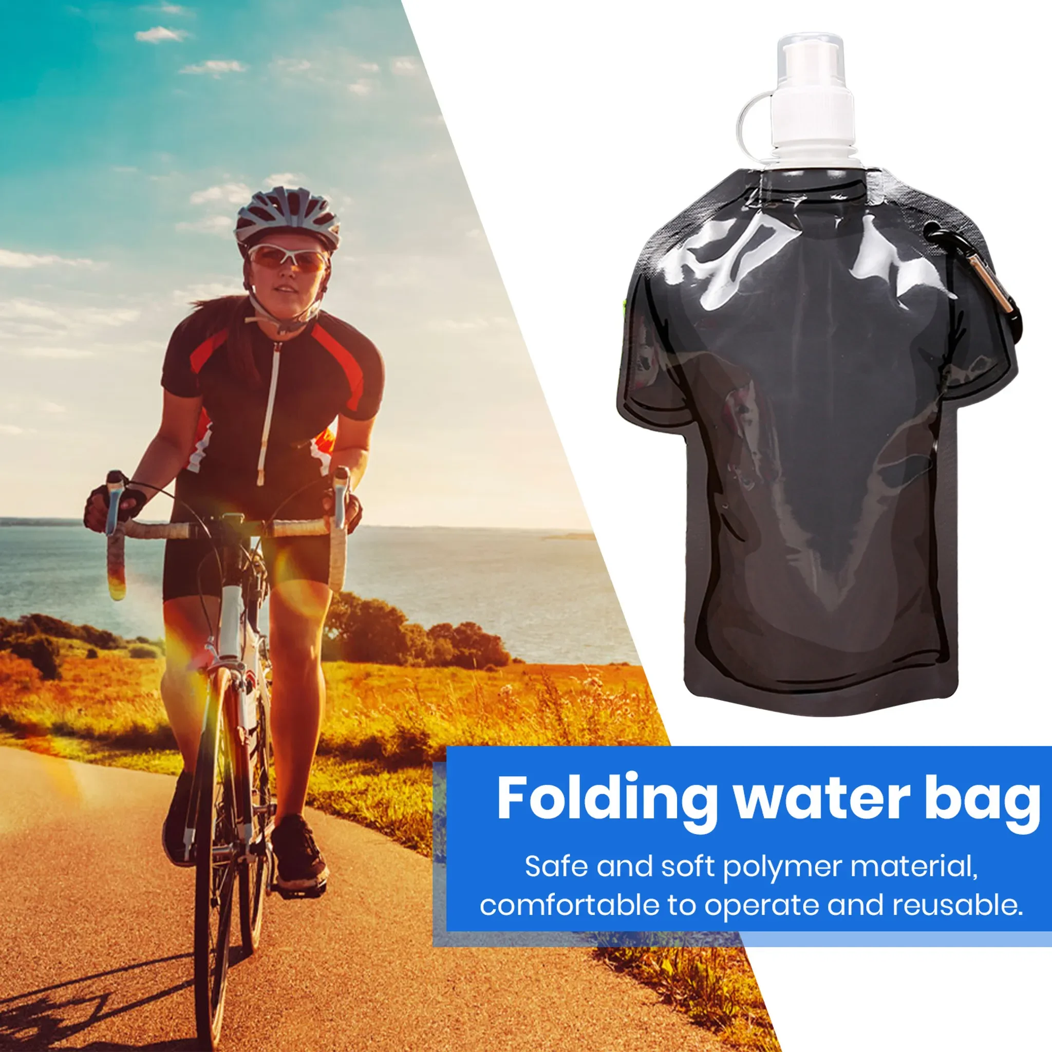 Highlights: Praktischer Wasserbeutel für Outdoor, Sport und Reisen. Kompakt, auslaufsicher und wiederverwendbar, mit originellem T-Shirt-Design. Ideal für Wandern, Camping, Radfahren, Angeln und andere Aktivitäten.