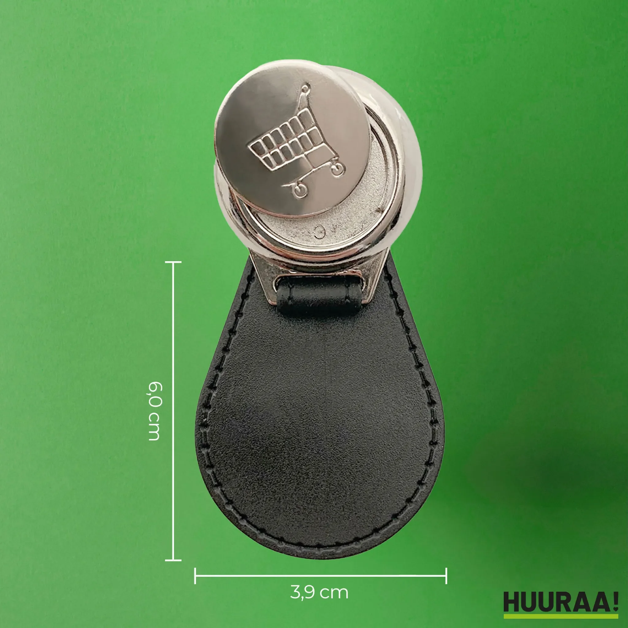 Highlights: Hochwertiger Metall-Schlüsselanhänger mit Kunstleder, integrierter Einkaufschip, vielseitig einsetzbar, perfekt als Geschenk oder Souvenir.