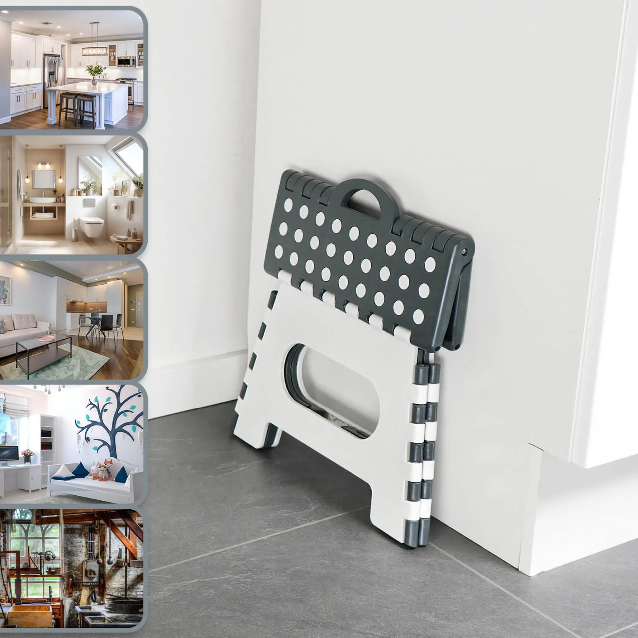 Dieser klappbare Tritthocker ist eine praktische Aufstiegshilfe für Haushalt und Büro. Er ermöglicht einen sicheren Zugang zu höher gelegenen Bereichen und lässt sich nach dem Gebrauch kompakt zusammenklappen.
