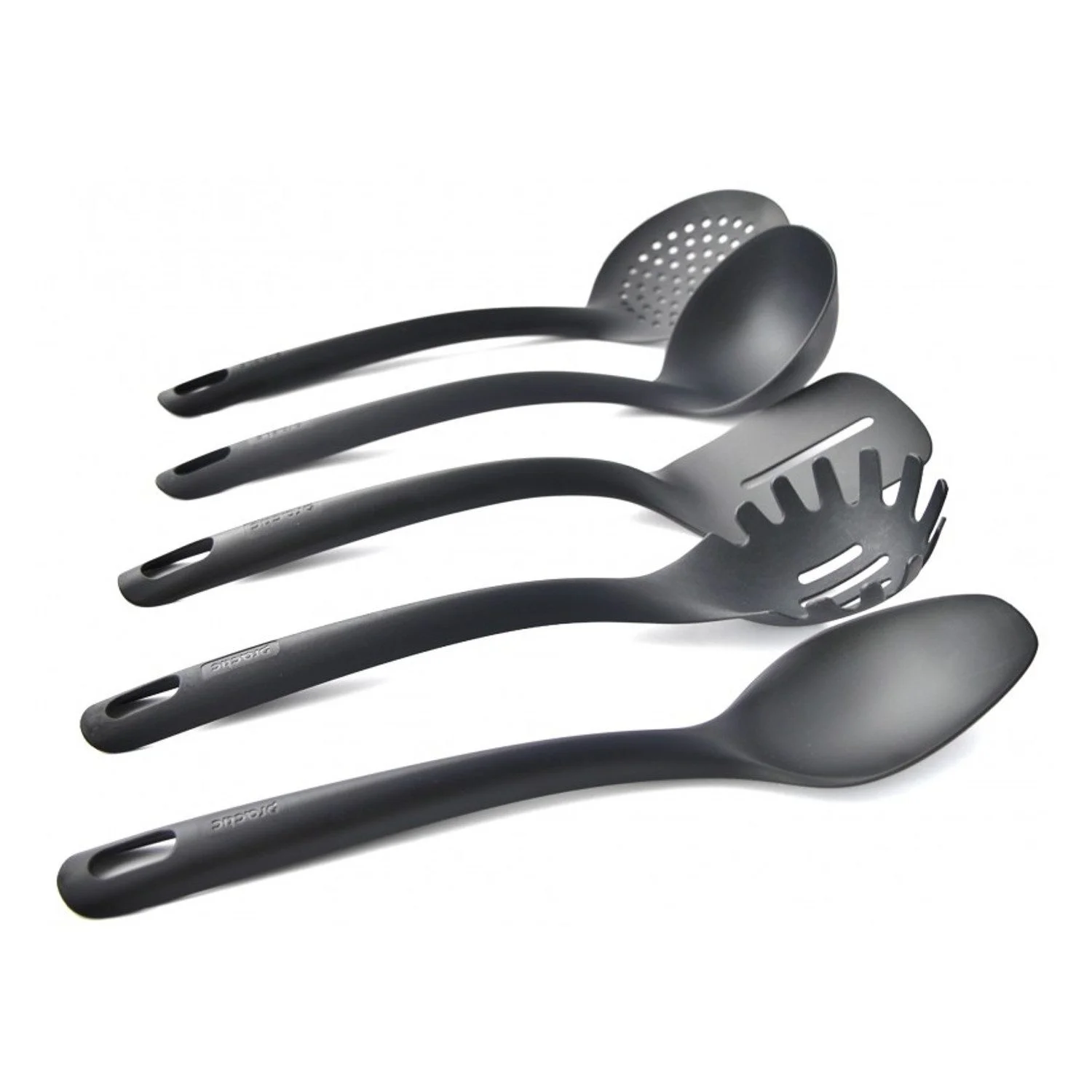 Dieses handliche 5-teilige Kochbesteck-Set überzeugt durch hochwertige Verarbeitung, funktionelle Griffform und ein zeitgemäßes Erscheinungsbild. Die Küchenwerkzeuge liegen sicher in der Hand und erleichtern das Kochen, Rühren, Portionieren und Abseihen verschiedenster Speisen im Alltag.
