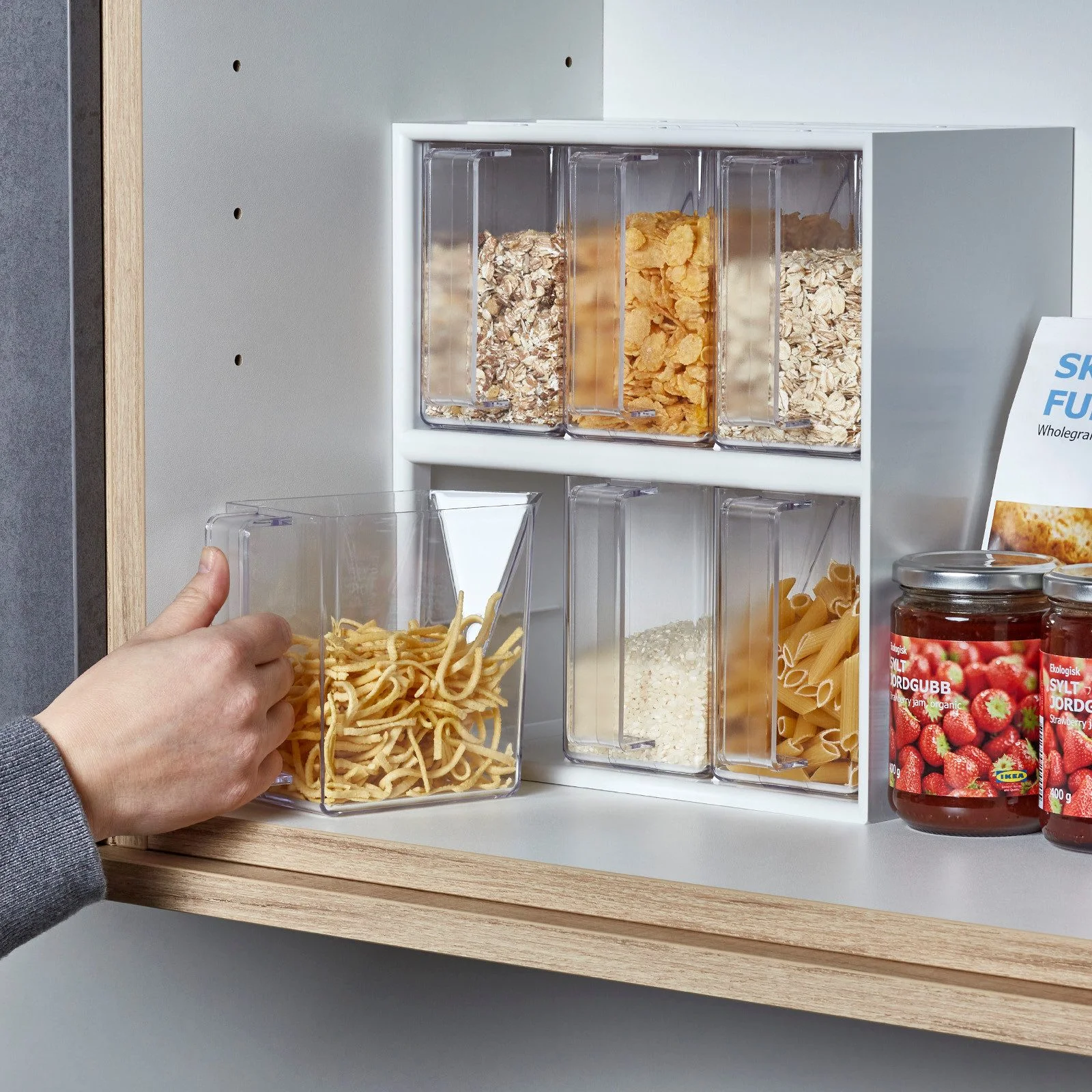 Highlights: Platzsparende Vorratslösung, präzises Ausschütten, transparenter Kunststoff für schnelle Übersicht, ideal für Koch- und Backzutaten.