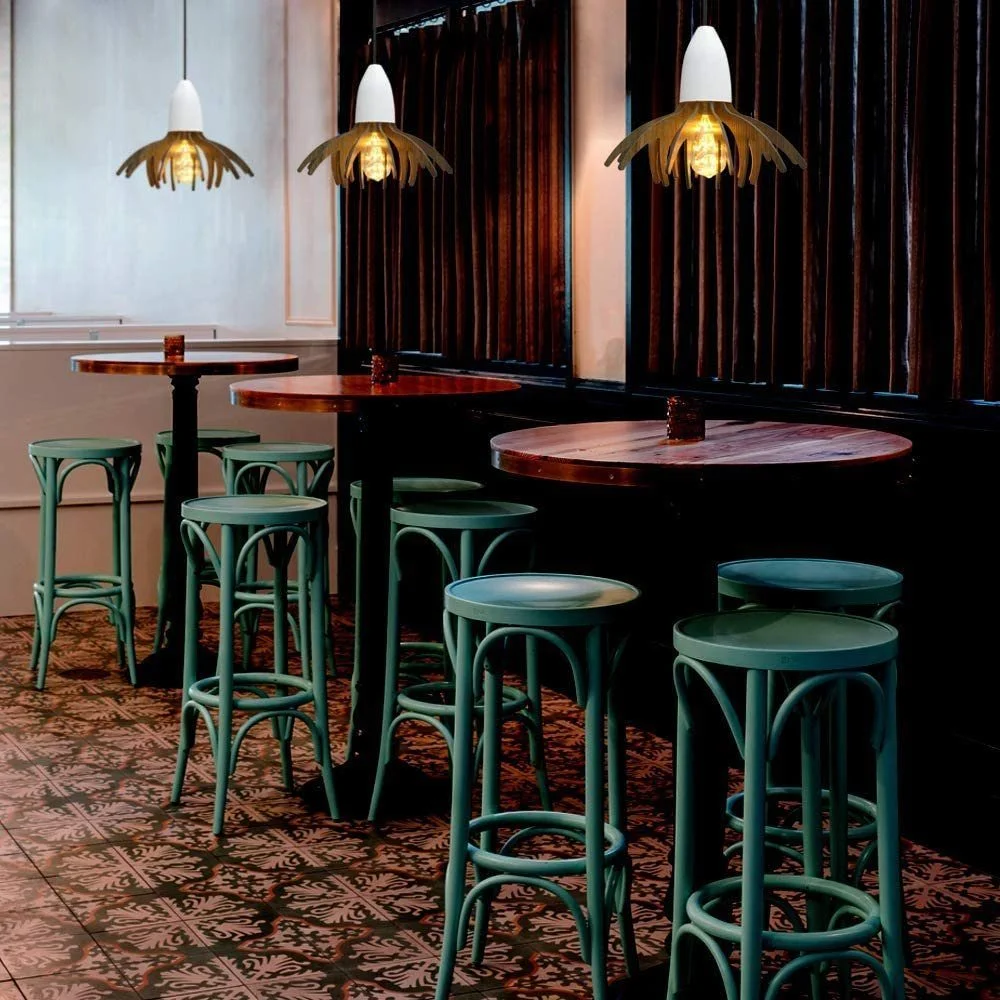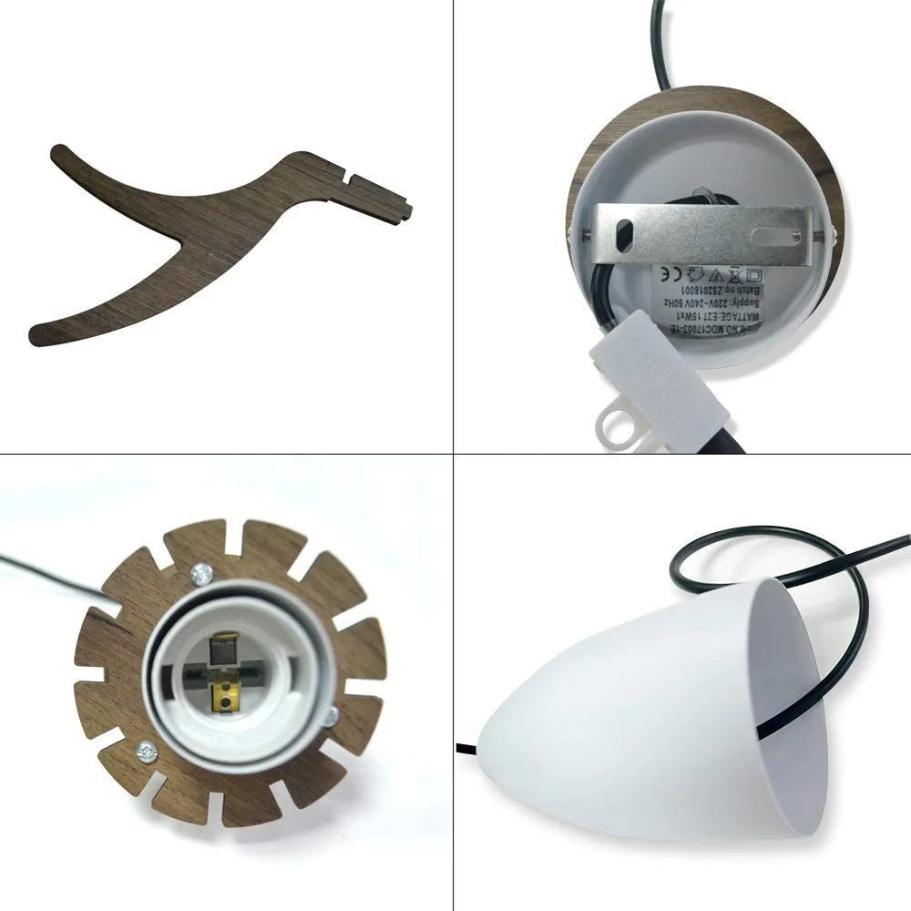 Stilvolle Pendelleuchte aus Holz und Metall für warme, einladende Beleuchtung. Die isolierten Holzarme sorgen für angenehmes Licht und schaffen eine gemütliche Atmosphäre in Wohn- und Gastronomiebereichen.