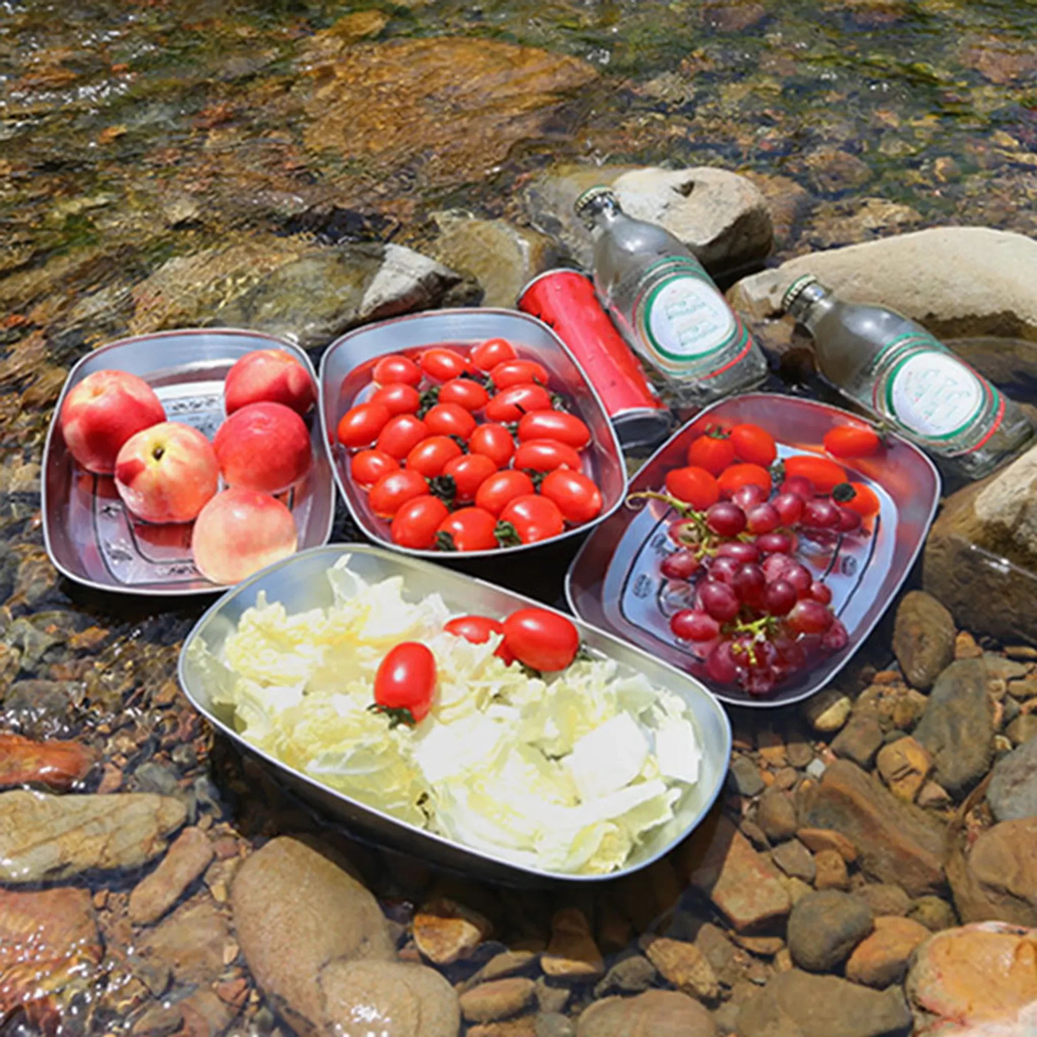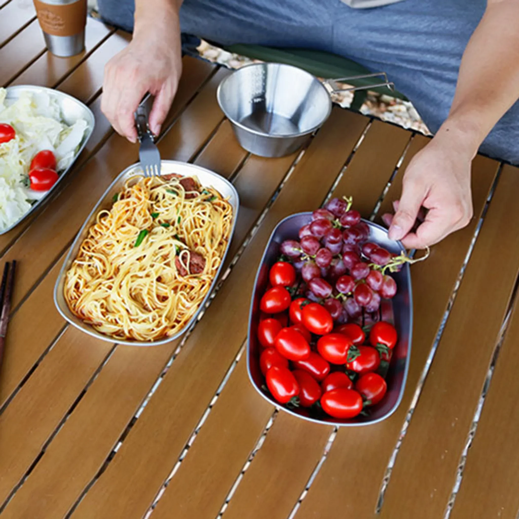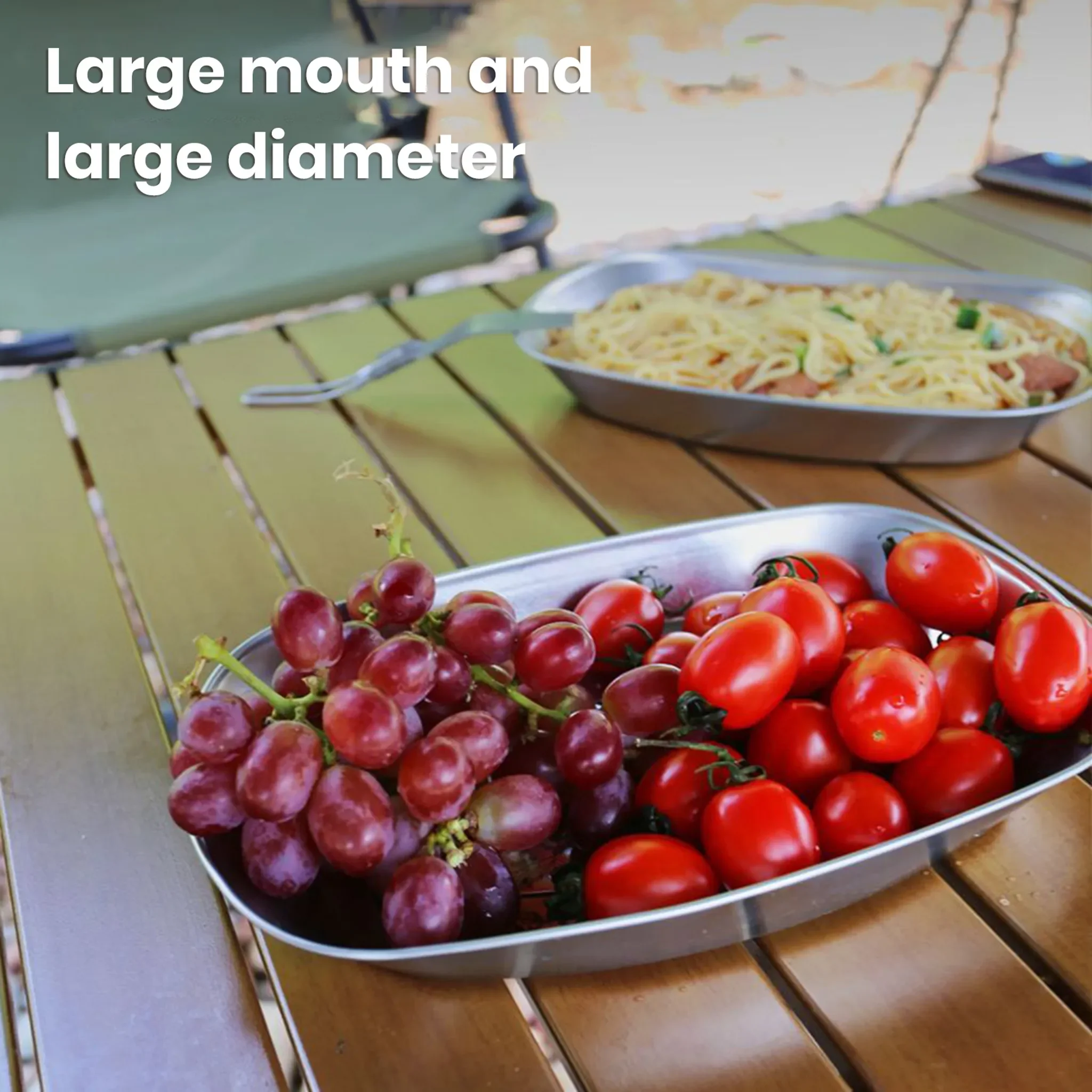 Unser hochwertiger Outdoor-Camping-Teller aus Weißblech ist lebensmittelecht, hitzebeständig und korrosionsbeständig. Ideal für Camping, Picknick oder den Einsatz im Innenbereich. Das vertiefte Design erlaubt eine einfache Kombination verschiedener Speisen.