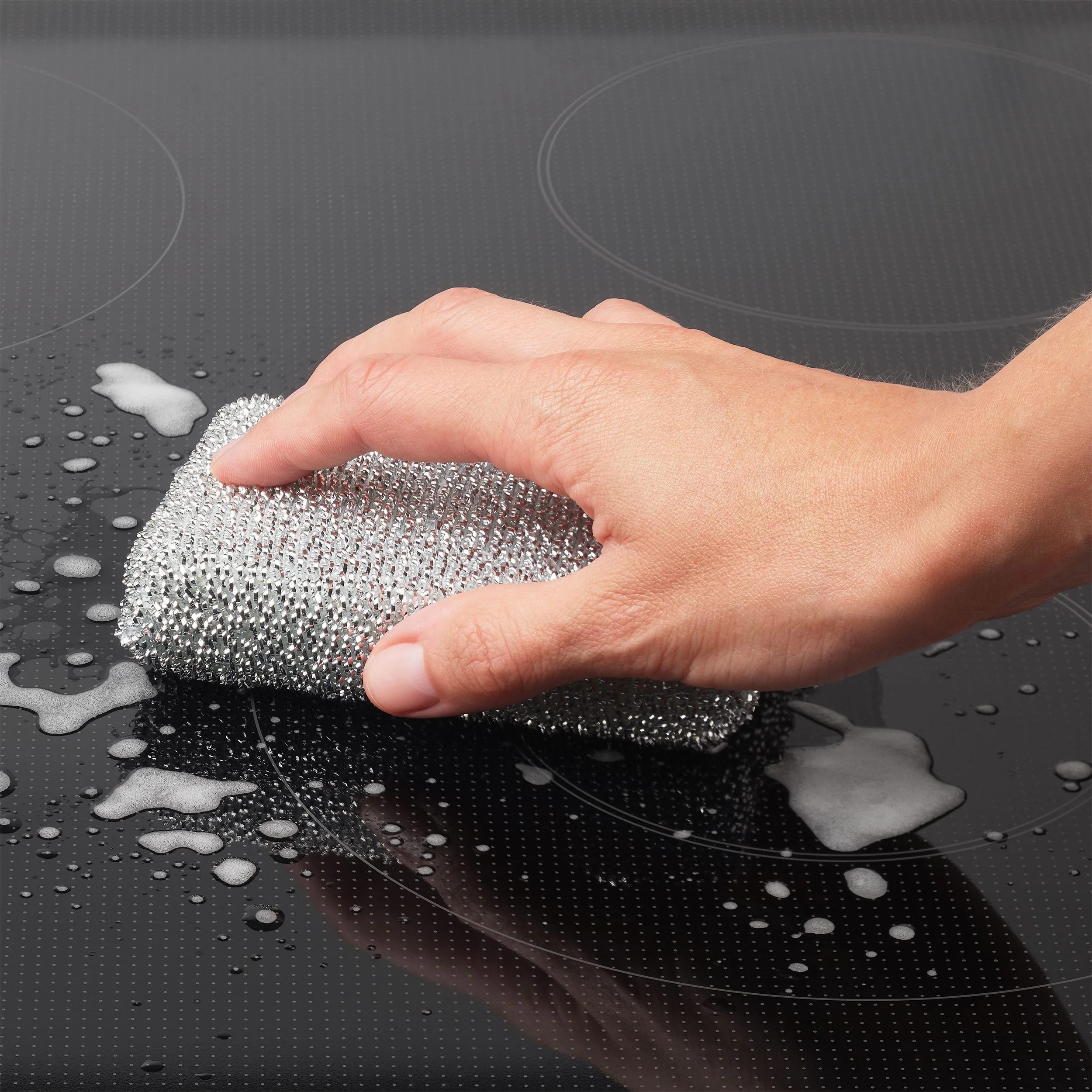 Die handliche Größe liegt angenehm in der Hand und passt sich mühelos auch Ritzen, Kanten und schwer zugänglichen Stellen an. Ideal für beschichtete Töpfe und Pfannen sowie für polierte Oberflächen wie Spülen, Glas- und Keramikkochfelder.