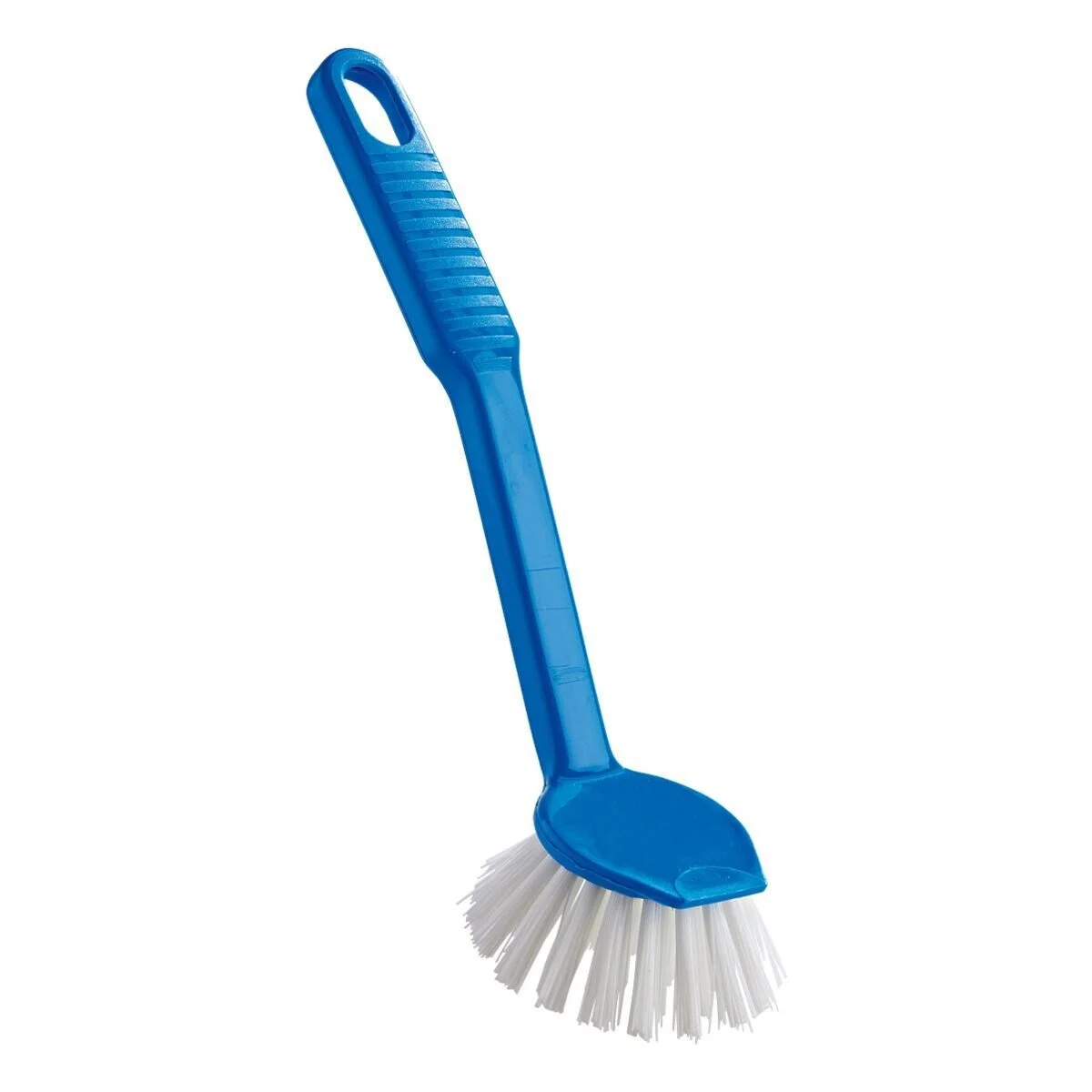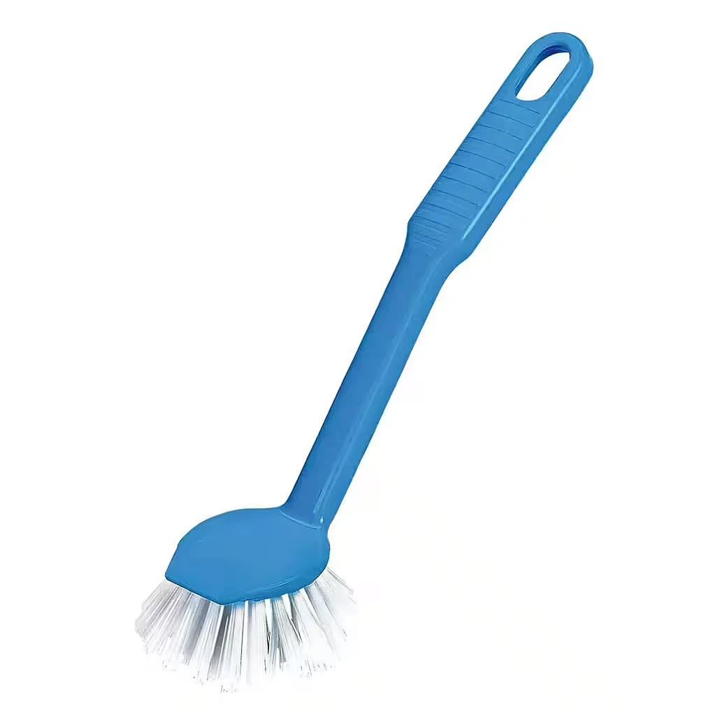 Runde Spülbürste für die effektive Reinigung von Tellern, Töpfen und Küchenutensilien. Speziell angeordnete Borsten entfernen hartnäckigen Schmutz mühelos, während der ergonomische Griff komfortable Handhabung bietet.