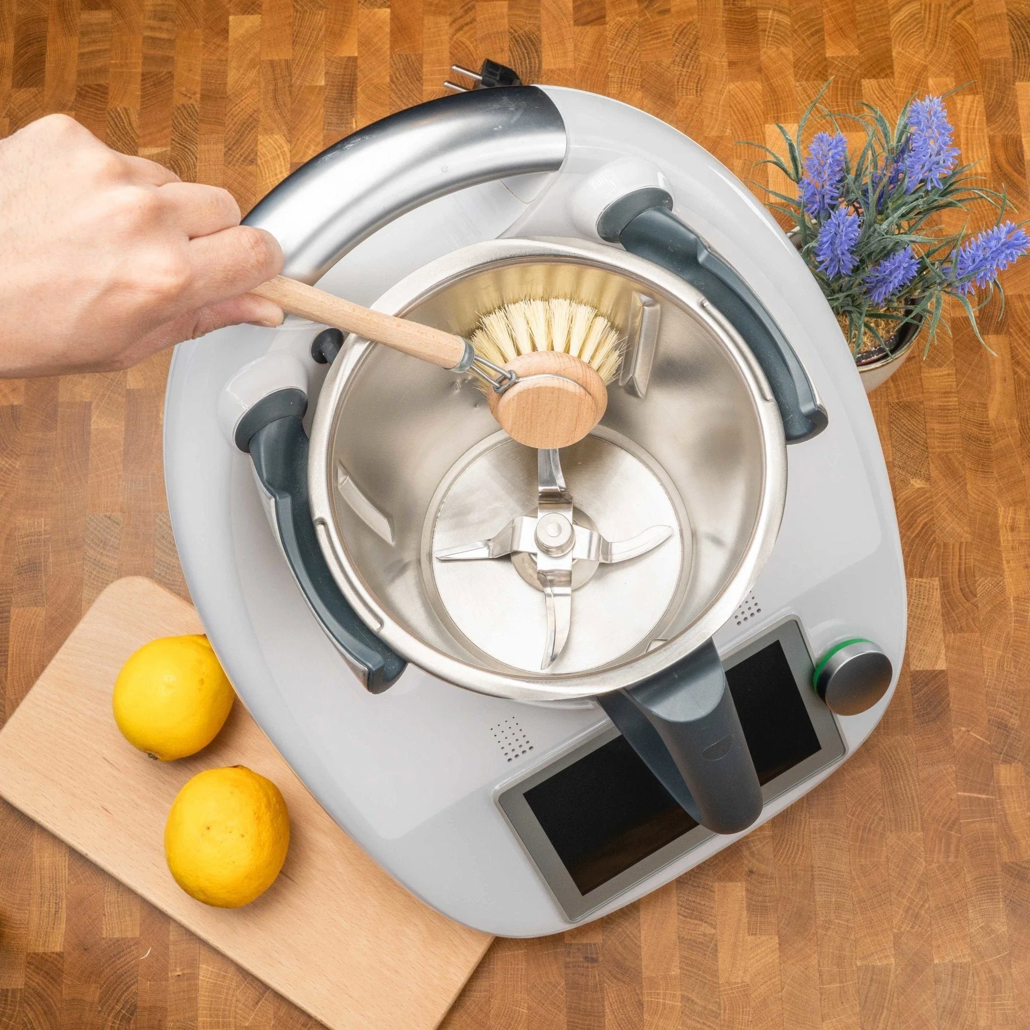 Der ergonomisch geformte Griff liegt angenehm in der Hand und erreicht mit seiner optimalen Länge auch schwer zugängliche Stellen. Dank austauschbarem Bürstenkopf wird nur ersetzt, was wirklich verbraucht ist – das spart Ressourcen und schont die Umwelt.